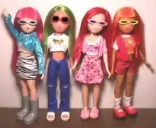 What's Her Face! was a line of customizable dolls that straddled the line between traditional fashion dolls and creative activity toys.[1] Made by Mattel, the line ran from 2001–2003, and enjoyed only a modest success in a market dominated by Mattel's iconic Barbie and MGA Entertainment's Bratz dolls. Following the discontinuation of the What's Her Face! line, their body molds were used for the Wee 3 Friends line of Barbie-related dolls. Several fashion, wig, and activity packs were also released for the What's Her Face line.