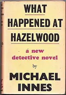 What Happened at Hazelwood is a 1946 detective novel by the British writer Michael Innes.[1] It is a standalone novel from the author who was best known for his series featuring the Golden Age detective John Appleby. In this novel his role is fulfilled by Inspector Cadover who also appeared later in an Appleby novel A Private View.[2] It takes the form of a country house mystery. Ralph Partridge writing in the New Statesman observed "Michael Innes may be a Professor of English in disguise but What Happened at Hazelwood would never win him a Chair of Detection. I suppose we should be grateful that it is not a surrealist thriller, and that Inspector Appleby is off duty."