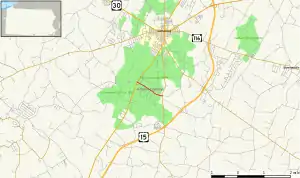 ![]() Map of Adams County in southern Pennsylvania with Wheatfield Road highlighted in red | |
