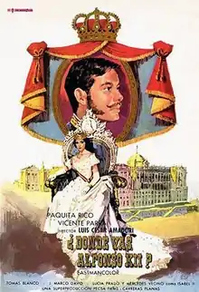 Where Are You Going, Alfonso XII? (Spanish: ¿Dónde vas, Alfonso XII?) is a 1959 Spanish historical drama film directed by Luis César Amadori and starring Paquita Rico and Vicente Parra.[1] It portrays the life of Alfonso XII of Spain and Maria de las Mercedes. It was followed by a sequel Alfonso XII and María Cristina the following year.