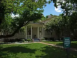 The White–Turner–Sanford House is a historic residence in Huntsville, Alabama, USA. It was built in 1827 by James White, a merchant from Virginia, on land purchased from LeRoy Pope. The home has had numerous owners through the years including John H. Lewis, mayor from 1826 to 1828, and state representative George W. Lane. Originally a one-story Federal-style house, a two-story Greek Revival addition was built in 1858. The original part of the house consists of a center-hall main block with an ell. It is built of brick laid in common bond, with a gable roof. A portico supported by four thin columns covers the main entrance, which has a four-panel transom. Windows on the main block are the original rectangular sashes, except the windows on the façade which were modified with segmental arched tops to match the addition. The original portion contains a hall flanked by a parlor and reception room, with two bedrooms behind the parlor. A porch, kitchen and bath filling in the ell were added after the Civil War. The addition has a study and dining room on the ground floor and two bedrooms above.[2]