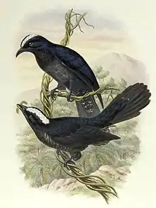 The white-crowned cuckoo or white-crowned koel (Cacomantis leucolophus) is a species of cuckoo in the family Cuculidae. It was originally described by Salomon Müller as Cuculus leucolophus.[1] It was later placed in the monotypic genus Caliechthrus, but most taxonomists place it the genus Cacomantis because it has a similar song to other cuckoos in this genus and it is genetically similar to the pallid cuckoo (Cacomantis pallidus).[2] It is found in New Guinea and neighbouring Salawati Island.
