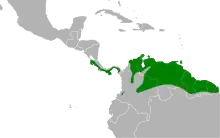 It is found in the "ABC Islands", Brazil, Colombia, Costa Rica, Ecuador, French Guiana, Guyana, Martinique, Panama, Suriname, Trinidad and Tobago and Venezuela.