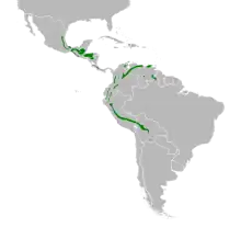 The range of white-winged tanager consists of several discontinuous areas. The four subspecies are found thus:[3]