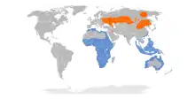 Their breeding habitat is freshwater marshes across from southeast Europe to Central Asia and the Russian Far East. They usually nest either on floating vegetation in a marsh or on the ground very close to water, laying 2-4 eggs in a nest built of small reed stems and other vegetation. In winter, they migrate to Africa, southern Asia and Australia. It is a scarce vagrant in North America, mainly on the Atlantic coast, but a few records on the Pacific coast and inland in the Great Lakes area.[6]