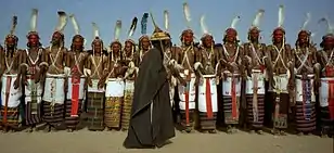 According to Richard Smith, Ibn Hawqal, a 10th-century traveller from Baghdad, divides the Berber clans into "the pure Sanhaja and the Banu Tanamak", the latter being "originally Sudan (i.e. black) whose skin and complexion became white because they live close to the North". Smith reports Ibn Hawqal as listing 22 named kinds of Banu Tanamak, but without saying whether they were "political, cultural, geographic, social, or linguistic in nature".[9] Smith suggests that the most likely scenario is that these ancient Ethiopian tribes, as represented today by the Haratin, were absorbed into Berber communities. Thus, he posits that Ibn Hawqal's "strange report of the Banu Tanamak", who changed from black to white, may have echoed "a real event, the absorption of tribes".[10] Robert Brown likewise argues that "the "white" Berbers referred to may be only survivals of the original stock now reduced to duskiness by the infusion of Arab and Sudanic blood".[11]