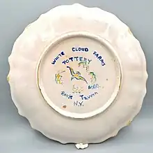 5. 1 2 Visakay, Stephen (July 2006). "The Curious Story of the Most Famous Unknown Pottery Company in America: White Cloud Farms, Inc., Rock Tavern, New York". Journal of the American Art Pottery Association. 22 (4): 9–10.