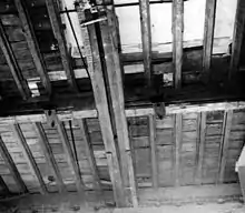 The Public Buildings Administration was asked to investigate the condition of the White House, but no action was taken until January 1948. After the commissioner of the Public Buildings Administration, which had responsibility for the White House, noticed the Blue Room chandelier swaying overhead during another crowded reception, he and the White House Architect conducted their own on-site investigation the next day. They discovered split and gouged-out beams supporting the ceiling and second floor above. He reported "that the beams are staying up there from force of habit only."[9][10] The number of occupants in the second floor was restricted, temporary fixes were made to some of the beams, and scaffolding-type supports were erected throughout the first family's second floor living quarters.