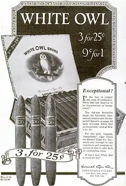White Owl is a brand of machine-produced cigars.[1] The logo consists of a snowy owl perched on a cigar. The brand is owned by Swedish Match and was formerly owned by General Cigar Company.