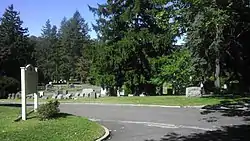 White Plains Rural Cemetery is a historic cemetery located in the city of White Plains, Westchester County, New York. The cemetery was organized in 1854 and designed in 1855. It contains miles of narrow, paved roads, none of which are in a straight line. The roads create circular and lozenge-shaped areas for burials. Also on the property is a former church, now a cemetery office. It was built in 1797, and is a 2+1⁄2-story, five-by-three-bay frame building with a high-pitched gable roof. It was modified for office use in 1881.[2]