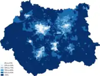 | Greater London | 5,663,496 | 85.7% | 5,333,580 | 79.8% | 5,103,203 | 71.2% | 4,887,435 | 59.8% | 4,731,172 | 53.8% | |