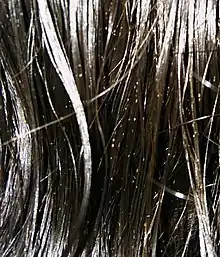 White piedra is caused by Trichosporon beigelii.[5][6] White piedra can occur on the hair of the scalp; Trichosporon ovoides is likely the cause in this case.[7] White piedra on scalp hair is rarely caused by Trichosporon inkin; pubic hair with white piedra is what T. inkin is mainly associated with.[8] White piedra can occur on pubic hair; T. inkin likely causes this.[7]