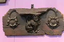 The friary was established on 14 February 1342 with the help of Sir John Poultney,[2][3] about a century after the Carmelites arrived in England. It was built on land that had previously been fields and orchards. The Carmelites were a mendicant religious order, dependent on charity from those they taught and on the gifts from pilgrims visiting their shrine of Our Lady of the Tower. According to Dugdale, 'This Chapell is in the tower of the Cittye Wall without New Gate, close by the roadway leading towards London. On the outside thereof was a picture of the blessed Virgin, richly painted, and within an image and her altar, whereat most travellers which passed by did offer more or lesse, out of confidence that their journey would be better blest'.[4] In 1344, King Edward III gave land to extend these buildings and a similar grant followed in 1352.[5] Several local benefactors left donations in the form of bequests to the friary: in 1384 Lord Basset of Drayton left the Carmelites £300 to enlarge the church, in 1419 the monastery was considerable enlarged with a gift from William Botener, of Withibroke[6] and in 1506 Thomas Bonde of Coventry left them 20 marks to assist with the rebuilding of the cloisters. The coat of arms of the Ferrers family (Earls of Derby) was found during excavations of the church, suggesting that the family had also made bequests to the order.[5] Carmelite orders were dependent on such donations to build their friaries and the Coventry house was clearly developed through a process of gradual building and enlargement as and when funds became available.[5]