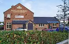 1750 saw the opening of the Boat And Horses public house, making this Chadderton's oldest licensed premises, a distinction shared with the Dog inn at Cowhill. In its early years the pub was known as The Crown. During the Rochdale Canal's construction, a new inn had been built alongside, together with a wharf and small warehouse. It was given the name the Pleasure Boat Inn, but was also known as the Boat House for a few years, until in 1826 it received its present name. The construction of the M60 motorway in the late 1990s, caused substantial damage to the foundations of the Boat and Horses and it had to be completely rebuilt. During this work, a travel lodge was added to the scheme, which also included a restaurant and pleasant canal side terrace.[9]