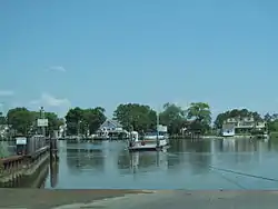 The Whitehaven Ferry is a passenger and automobile cable ferry that crosses the Wicomico River in Whitehaven, Maryland, located to the southwest of Salisbury. The ferry is operated by the Wicomico County Department of Public Works and runs between the community of Whitehaven in Wicomico County to the north and Somerset County in the south.[1][2] The ferry can carry a maximum of 6 passengers and 3 cars and has a weight limit of 10,000 pounds.[1][3] The Whitehaven Ferry operates from early morning until the evening every day of the year except Christmas and is free.[1] A ferry has crossed the Wicomico River in the area since 1687.[4] The current ferry is believed to be the oldest continuously operating ferry in the United States.[5] In 2012, the ferry was overhauled and refurbished.[1]