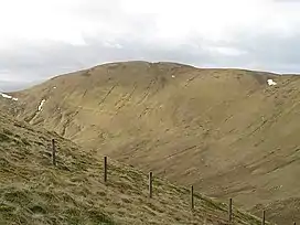 Whitehope Heights is a hill in the Moffat Hills range, part of the Southern Uplands of Scotland. The lowest Donald hill in the range, it is separated from Hart Fell by a steep grassy cleuch known as The Gyle. Like its neighbour, the Dumfries and Galloway-Scottish Borders border runs along its summit.[3] The southern slopes of the hill are part of the Corehead hill farm, an area owned by the Borders Forest Trust for the purposes of habitat regeneration; as a result, a large deer fence lines the boundary.[4] East of the Devil's Beef Tub and Annandale Way, it is most frequently climbed from this direction, but ascents from Hart Fell are also common.[5]