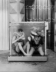 Johnny Carson and Jane Baldasare in a show stunt, 1961