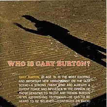 Who Is Gary Burton? is an album by vibraphonist Gary Burton recorded in 1962 and released on the RCA label.[1] Some of the musicians who appear are alto saxophonist Phil Woods, trombonist Bob Brookmeyer, trumpeter Clark Terry, pianist Tommy Flanagan, bassist John Neves and drummer Joe Morello.