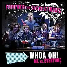 "Whoa Oh! (Me vs. Everyone)" is the debut single by Forever the Sickest Kids, released on April 1, 2008. It is from their debut album Underdog Alma Mater. The song's video aired on MTV's TRL on June 24.[2] The song reached No. 38 on the Billboard Mainstream Top 40 chart. The remix version was released on May 26, 2009 on iTunes and features Selena Gomez.[3] The song has been featured in numerous Nerf commercials.[4]