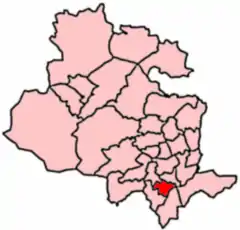 Wibsey (population 14,530 – 2001 UK census) is a ward within the City of Bradford Metropolitan District Council, West Yorkshire, England.[2] The population had increased to 14,671 at the 2011 Census.[3] Wibsey is named after Wibsey village which makes up the main part of the ward. As well as the area of Wibsey, the ward includes the area of Bankfoot to the east and much of the area of Odsal. It is located on a ridge which runs from the city centre, up to Queensbury, which has been credited as the highest market town in England.