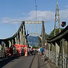 It is on the Austrian border and has a border crossing via the Wiesenrainbrücke, a bridge over the Rhine. This road bridge also carries a track of the International Rhine Regulation Railway, a now preserved rail line formerly used in the management of the Rhine.