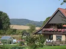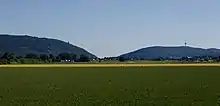 The Wiehen Hills[1] (German: Wiehengebirge, pronounced [ˈviːənɡəˌbɪʁɡə] , also locally, just Wiehen) are a hill range in North Rhine-Westphalia and Lower Saxony in Germany. The hills run from west to east like a long finger away from the main upland area of the Lower Saxon Hills, beginning at the Weser River near Minden and terminating in the vicinity of Osnabrück. It is the northernmost of the German Central Upland ranges extending into the Northern Lowlands. Their highest hill is the Heidbrink near Lübbecke with an altitude of 320 metres (1,050 ft).