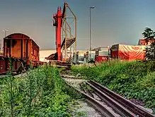 The Wien Nordwestbahnhof (English: Vienna Northwest Railway Station), abbreviated as Wien NWBH, is a goods station in transformation to a city development area in Brigittenau district of Vienna, Austria. Passenger transport ended in 1959. It serves as the southern terminus of the Austrian Northwestern Railway. The northwestern terminus of the line was Prague Těšnov station till 1972.[1] Freight transport is in the phase of termination. By 2025, a new district will be built on the site. An interim use phase will begin in 2018.