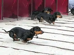Dachshunds sprinting out of the starting gate
