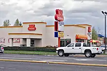 Wienerschnitzel is an American fast food chain that specializes in hot dogs. The company was founded in 1961 by former Taco Bell employee John Galardi as Der Wienerschnitzel. Despite the name, the company does not ordinarily sell Wiener schnitzel, doing so once as a promotion.[2] Wienerschnitzel locations are found predominantly in California and Texas; others are found in Arizona, Arkansas, Colorado, Illinois, Louisiana, New Mexico, Nevada, Utah, and Washington. Outside the United States of America, there are stores located in Guam,[3] Panama, and Chile.[4]