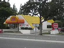 The chain is most notable for the A-frame roofs of its older restaurants, similar to the original structures used by IHOP, Tastee-Freez, Nickerson Farms, and Whataburger. The chain's advertising mascot is an anthropomorphized hot dog known as The Delicious One.[5][6]