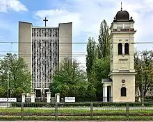 In 1856, at the intersection of current Puławska Street and Dolna Street, was built the Church of the Nativity of the Blessed Virgin Mary, which originally belonged to the Roman Catholic Parish of St. Alexander, and in 1917, it had become its own parish church. It was the first church built within current boundaries of the district of Mokotów. The building was destroyed in 1944, during the Warsaw Uprising. In its place, between 1950 and 1966, was built the Church of Saint Michael the Archangel.[31][32]