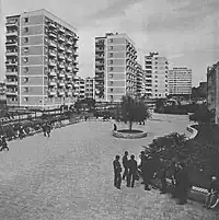 In 1938, in Wierzbno was opened the Dreszer Park, an urban park designed by Zygmunt Hellwig in the modernist style, and located between current Ursynowska Street, Independence Avenue, Odyńca Street, and Krasickiego Street..[20][21] In 1944, during the Second World War, the park become a defensive point of the Polish resistance fighters of the Warsaw Uprising, mainly from the Baszta Regiment Group, who defended their position from German forces attacking from the north between 2 and 13 August 1944, and from the south, between 25 and 27 September 1944.[22][51] During the war the park was used as a provisional cemetery, both for the fallen Polish resistance fighters and the civilian casualties.[21] After the end of the conflict, the bodies were exhumated and relocated to the proper cemmentaries. The park was restored and reopened in 1951.[51] The western portion of the park, located between Ursynowska Street, Odyńca Street, Krasickiego Street, and Independence Avenue, was separated from the rest, forming the Second Jordan Garden, one of the Jordan gardens in the city, which form urban green spaces dedicated as the recreational and play area for children and youth.[52]