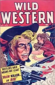 Wild Western (originally titled Wild West) was a Western comic book series published by Atlas Comics, the 1950s forerunner of Marvel Comics. The anthology series published 57 issues from 1948 to 1957. Kid Colt stories were usually the lead feature and a prominent cover element throughout the series' run, while most issues also featured the Two-Gun Kid and the Black Rider. Other recurring characters included Tex Taylor, Arizona Annie, the Apache Kid, and the Ringo Kid.