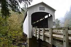 Wildcat Creek Bridge is a covered bridge built in 1925 at Austa, near Walton, in the U.S. state of Oregon. It uses Howe truss engineering and was listed on the National Register of Historic Places in 1979. The 75-foot (23 m) bridge carries Austa Road over Wildcat Creek near its confluence with the Siuslaw River.[2][3]