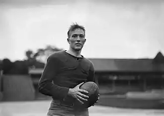 Born in Spokane, Washington, on January 26, 1891, Penfield spent most of his early life in Hudson, Wisconsin.[1][3] He studied at Princeton University, where he was a member of Cap and Gown Club[4] and played on the football team. After graduation in 1913, he was hired briefly as the team coach. In 1915 he obtained a Rhodes Scholarship to Merton College, Oxford,[5] where he studied neuropathology under Sir Charles Scott Sherrington.[6] After one term at Merton, Penfield went to France where he served as a dresser in a military hospital in the suburbs of Paris.[5] He was wounded in 1916 when the ferry he was aboard, the SS Sussex, was torpedoed.[5] The following year, he married Helen Kermott, and began studying at the Johns Hopkins School of Medicine, attaining his medical degree in 1918; this was followed by a short period as a house surgeon at the Peter Bent Brigham Hospital in Boston.[5] Returning to Merton College in 1919,[5] Penfield spent the next two years completing his studies; during this time he met Sir William Osler. In 1924, he worked for five months with Pío del Río Hortega characterising the type of glial cells known as oligodendroglia.[7] He also studied in Germany with Fedor Krause and Otfrid Foerster, as well as in New York City.[8][9][10] In 1928, during the 6 months he spent in Germany with Foerster, he learned how to use local anesthesia to keep brain surgery patients awake.[11][12][13]