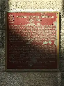 Penfield was designated a National Historic Person in 1988 by the government of Canada. As such, a federal historical marker from the national Historic Sites & Monuments Board and Parks Canada was erected, located at a building that bears his name on University Street, part of the McGill University campus in Montreal.