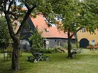 The building was converted into an architectural studio by Tegnestuen Vandkunsten in the 1980s, although the firm later moved to larger premises. Its gable, which faces Christianshavn Canal, adjoins the two large warehouses which expanded the barracks in 1831 and 1847. They were adapted for use as living quarters when they were acquired by the Army but their design still testifies to their original use. The one to the right, known as Tuteins Pakhus (English: The Tutein Warehouse), is from 1762 while the one to the left is slightly older. A wall with another gateway connects the warehouses to the buildings which complete the block to the south along Sankt Annæ Gade.