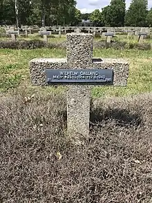 Galland was killed in action on 17 August 1943 during the Schweinfurt-Regensburg mission, shot down in his Fw 190 A-6 (Werknummer 530125—factory number) 5 kilometres (3.1 miles) west of Maastricht.[48][49] Unteroffizier Heinz Gomann, Galland's wingman on this mission, had yelled out a warning too late. Galland disappeared after the first P-47 attack.[50] His body, still in his aircraft, was found two months later north of Liège.[51] II. Gruppe took off on a bomber intercept mission and engaged the B-17 bomber formation but the German aircraft were intercepted by escorting P-47 fighters from the 56th Fighter Group, USAAF, under command of Colonel Hubert Zemke. It is assumed that Galland was shot down by the American fighter pilot Walker "Bud" Mahurin of the 56th Fighter Group.[52] Galland was temporarily succeeded by Hauptmann Johannes Naumann until Oberstleutnant Johannes Seifert took command on II. Gruppe on 9 September.[53]