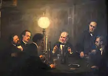 Wilhelm August Stryowski (1834–1917) was a Polish-German painter. Born in Gdańsk (Danzig), he finished the Gdańsk School of Fine Arts. He studied here under Johann Carl Schultz, the school founder and director, and with a scholarship he later studied in Academy of Fine Arts in Düsseldorf. From 1870 to 1873 he was one of creators of the City Museum (now, National Museum in Gdańsk). From 1880 he was art conservator of the museum collection, and from 1887 he was the museum's curator and at the same time - he was a secretary of Association of Friends of Art. From 1873 he lectured in the School of Arts and Artistic Crafts. In 1912, partially paralyzed, he lost command of one hand. He died in Essen in 1917 and was subsequently buried in Gdańsk according to his last will.[1] His wife Clara (née Bädeker, or Baedeker) - was a niece of the editor of well-known guide books. Most famous works by W.A.Stryowski depict Gdańsk society - Jews, Romas, workers, prominent citizens. One of the streets in Gdańsk is named after him.