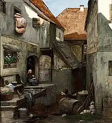 From 1899, he was regularly represented in exhibitions at the Glaspalast. Due to an eye ailment, he increasingly turned to watercolors after 1900. Together with Carl Strathmann, René Reinicke, Hans Wieland, Max Eduard Giese, Rudolf Köselitz, and several others, he was a co-founder of the Munich Watercolorists' Association.[2]