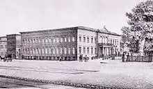 The newly featured area was dominated by Gerlach and Horst's (believed to be their work) Palais Marschall on the square's west side (No. 78), which also served as focal point of the old Mohrenstraße. The widening of the throughway to Wilhelmplatz – later Zietenplatz – was clearly intentionally conceived so as to allow a sweeping view of the grandiose structure as far as one ventured eastward.[7]