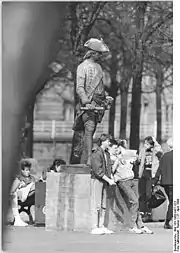 After the turn of the millennium, at the urging of the Berlin Schadow Society, it was planned to once again place the statues at or near their historical locations. The bronze copies of the memorials depicting Zieten and Anhalt-Dessau were erected on U-Bahn Island on the lateral axis of the former Wilhelmplatze in 2003 and 2005, respectively. The other four bronze statues found a home in September 2009 on the neighboring Zietenplatz, after its construction, begun in 2005, was finished.[16][17] As of 2011, the statues (as a complete set) are considered to be under protection of historic buildings and monuments.[18]