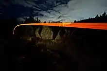 In recent years, Gill has expanded his artistic scope by adding performance, video, and photography to his repertoire. "For his 2009 work Cape Spear, he used a massive catapult to launch glowing orbs off the tip of North America's easternmost point (Cape Spear) and into the ocean. The work was documented with photo and video. He's also often inspired by his adopted home of Newfoundland: his 2009 installation Bareneed is a replica of an old-fashioned bathtub that Gill saw on the ocean floor while sea-kayaking in the coastal community of Bareneed."[8] Firefly #1 (2011) is a still image taken from Gill's video work Firefly (2011), commissioned for the Electric Speed project[15] which commemorated the anniversary of the birth of Marshall McLuhan. The concept for the video "came about through a kind of meditation on the nature of contemporary communication in Newfoundland.... and the images of light moving through the picture frame were meant to convey signals frantically going back and forth as word spread about an accident. Cell phone signals perhaps".[16]