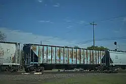 ![]() Willamette Valley Railway hopper car on a train in Topeka, Kansas, April 25, 2019. | |