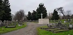 Willesden New Cemetery is a civic cemetery at Franklyn Road, Willesden, in the London Borough of Brent. It opened in 1891 and includes a memorial to local civilians who died in World War II.[2][3] It previously included chapels, now demolished, by Charles H Worley.[1][3]