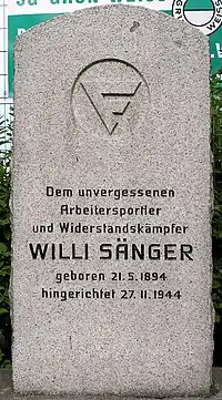 Willi Sänger resistance to National Socialism is memorialized in the Socialist Central Cemetery Friedrichsfelde in Berlin's Lichtenberg district.