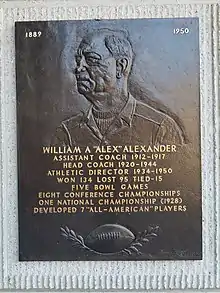William Anderson Alexander (June 6, 1889 – April 23, 1950) was an American football player and coach. He served as the head football coach at the Georgia Institute of Technology from 1920 to 1944, compiling a record of 134–95–15. Alexander has the second most victories of any Tech football coach. Alexander's 1928 Georgia Tech Yellow Jackets have been recognized as national champions by a number of selectors. Alexander was the first college football coach to place his teams in the four major post-season bowl games of the time: Sugar, Cotton, Orange and Rose. His teams won three of the four bowls. The 1929 Rose Bowl win, which earned his team the national championship, is the most celebrated because of the wrong-way run by California's Roy Riegels. Alexander was also the head basketball coach at Georgia Tech for four seasons from 1919 to 1924. He was inducted into the College Football Hall of Fame as a coach in 1951.