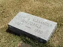 MacCorkle's mansion, Sunrise, became home to a children's museum in the early 1960s. It was added to the National Register of Historic Places in 1974.[4] In Charleston, a major arterial road, MacCorkle Avenue, was named for him and carries U.S. Route 60 through the area. His papers form a valuable research resource at the West Virginia Division of Culture and History, which maintains the MacCorkle Collection on their State History and Archives website.[5]