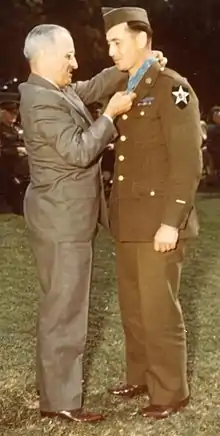 | Awards | Medal of Honor Purple Heart American Campaign Medal European–African–Middle Eastern Campaign Medal World War II Victory Medal |