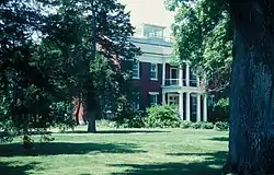 William B. Sappington House, also known as Prairie Park, is a historic home located near Arrow Rock, Saline County, Missouri. It was built in 1843, and is a 2+1⁄2-story, square, Greek Revival style brick dwelling on a limestone foundation. It measures 60 feet wide. The front facade features a two-story front portico with Doric order and Ionic order columns. Its roof is topped by a roof deck and cupola. The house was extensively restored from 1948 to 1955.[2]: 2, 4
